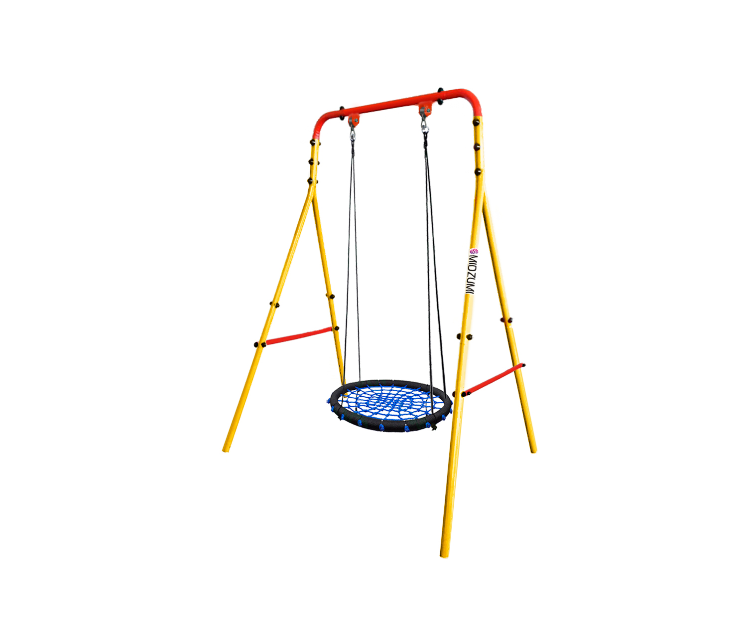 Торговый Дом Midzumi представляет новинку Уличный Детский спортивный комплекс Midzumi Sachiko Large L - в новом цветовом решении - солнечный день. Этот спортивный комплекс показывает разнообразие модельного ряда продукции Midzumi. Прочная металлическая конструкция позволяет выдерживать до 100 кг. Крепление стоек качелей осуществляется с помощью бетонирования. Midzumi Sachiko Large L состоит из металлического каркаса и подвесных качелей-гнезда.