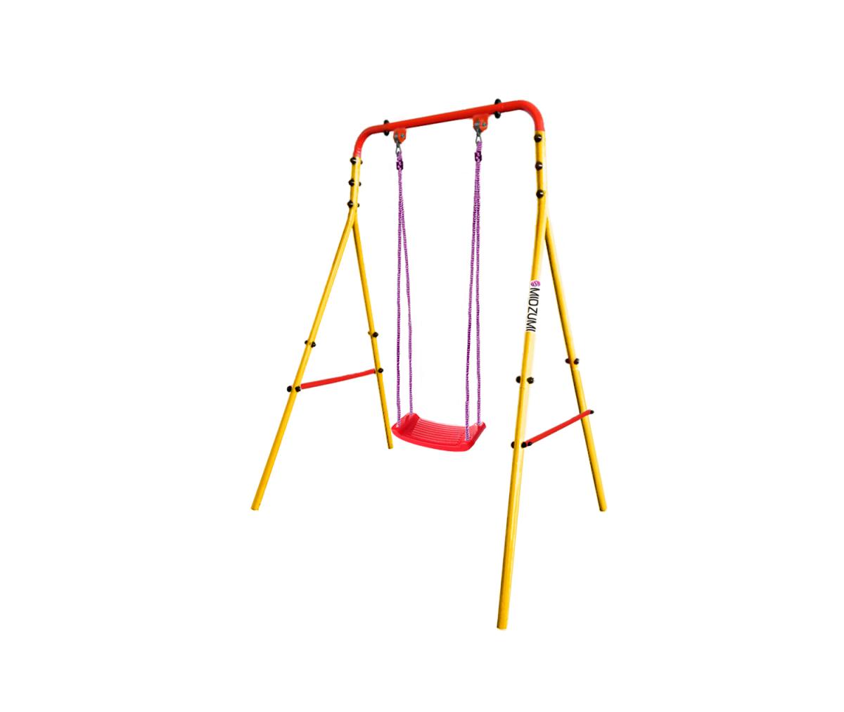 Торговый Дом Midzumi представляет новинку Уличный Детский спортивный комплекс Midzumi Sachiko Medium - в новом цветовом решении - солнечный день. Этот спортивный комплекс показывает разнообразие модельного ряда продукции Midzumi. Прочная металлическая конструкция позволяет выдерживать до 100 кг. Крепление стоек качелей осуществляется с помощью бетонирования. Midzumi Sachiko Medium состоит из металлического каркаса и подвесных пластиковых качелей. Это облегченный вариант классических качелей наиболее безопасный для детей, а также яркая раскраска и интересный дизайн качелей обязательно понравятся малышу, сможет уместить как дошкольника, так и подростка. Широкое пластиковое сидение качелей изготовленно из современного прочного материала и снабжена водостойким полиамидным шнуром, благодаря чему качели обладают повышенной износостойкостью и позволяют выдерживать максимальную нагрузку до 100 кг. Использование таких качелей подарит отличное настроение и восторг пользователям любого возраста! Качественные материалы изготовления надолго сохраняют яркость цвета и рассчитаны на любые погодные условия, устойчивы к попаданию прямых солнечных лучей, морозу, дождю и перепадам температур, прослужат долго даже при самом интенсивном использовании.