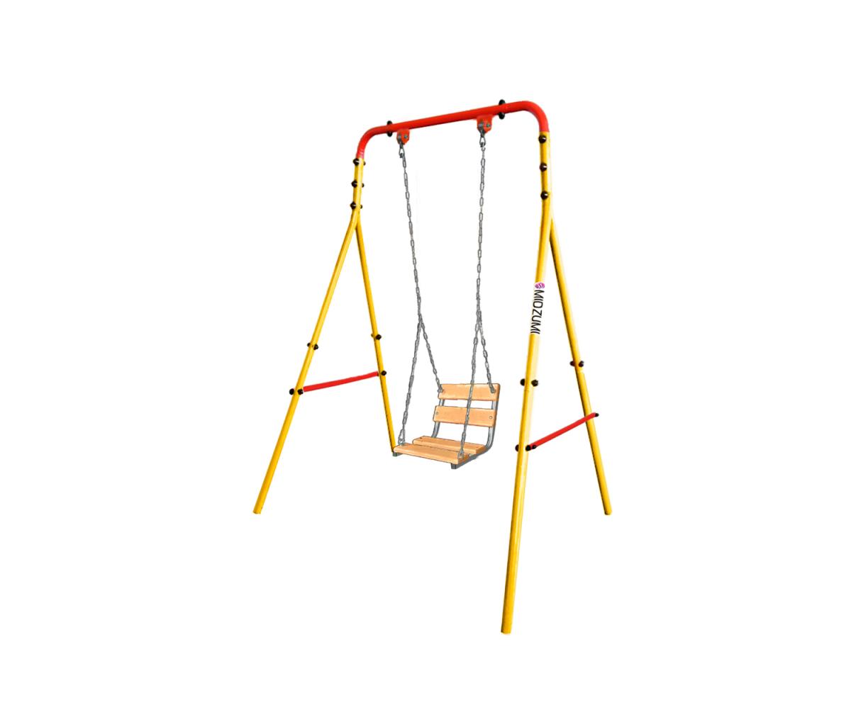 Торговый Дом Midzumi представляет новинку Уличный Детский спортивный комплекс Midzumi Sachiko Universal - в новом цветовом решении - солнечный день. Этот спортивный комплекс показывает разнообразие модельного ряда продукции Midzumi. Прочная металлическая конструкция позволяет выдерживать до 100 кг. Крепление стоек качелей осуществляется с помощью бетонирования. Midzumi Sachiko Universal состоит из металлического каркаса и подвесных на цепях металлических качелей с деревянной спинкой и сидением. Это классический вариант металлических качелей с деревянными спинкой и сидением, а также яркая раскраска и интересный дизайн качелей обязательно понравятся детям. Широкое деревянное сидение качелей сможет уместить как ребенка, так и взрослого, имеет под собой прочный металлического каркас и для подвеса снабжена металлической цепью, благодаря чему качели обладают повышенной износостойкостью и позволяют выдерживать максимальную нагрузку до 100 кг. Использование таких качелей подарит отличное настроение и восторг пользователям любого возраста! Качественные материалы изготовления надолго сохраняют яркость цвета и рассчитаны на любые погодные условия, устойчивы к попаданию прямых солнечных лучей, морозу, дождю и перепадам температур, прослужат долго даже при самом интенсивном использовании.