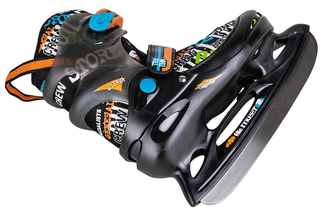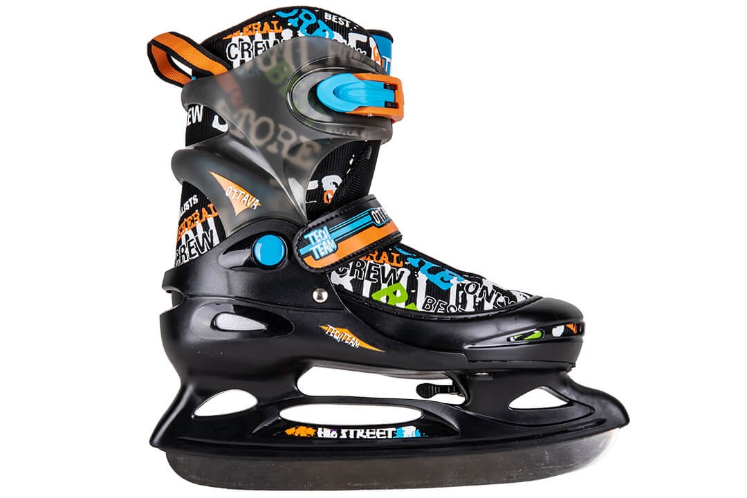 Коньки OTTAVA – хотите сделать подарок Вашему малышу? Взгляните на эти стильные и яркие коньки от бренда Tech Team. Благодаря пластиковому каркасу они легки в управлении. Ботинок имеет раздвижной механизм, что конечно является одним из несомненных плюсов. Внутренняя часть коньков обита вельветом, и поможет долго удерживать тепло внутри. Бакля (застежка) вместе с липучкой позволят с легкостью снимать и одевать коньки. Хоккейное лезвие изготовлено из легированного сплава и не подвержено к коррозии.