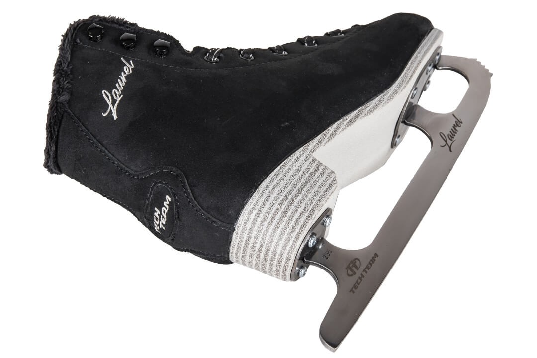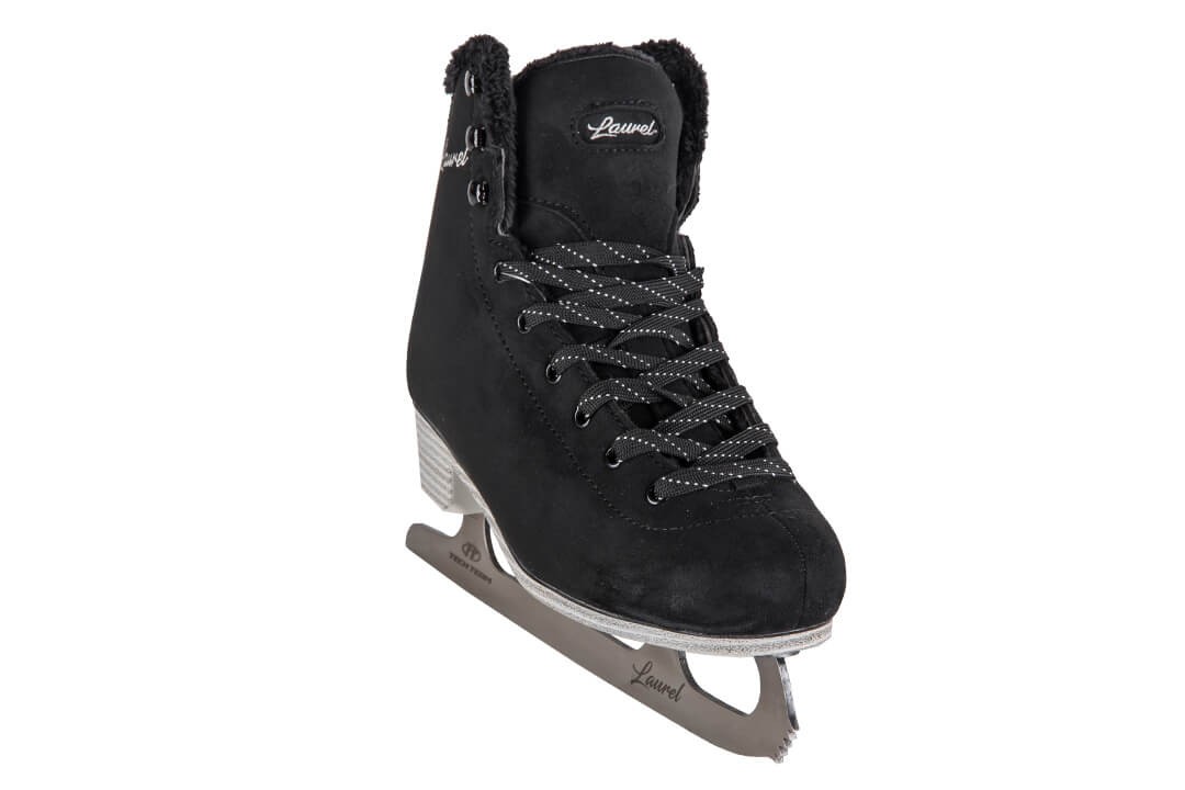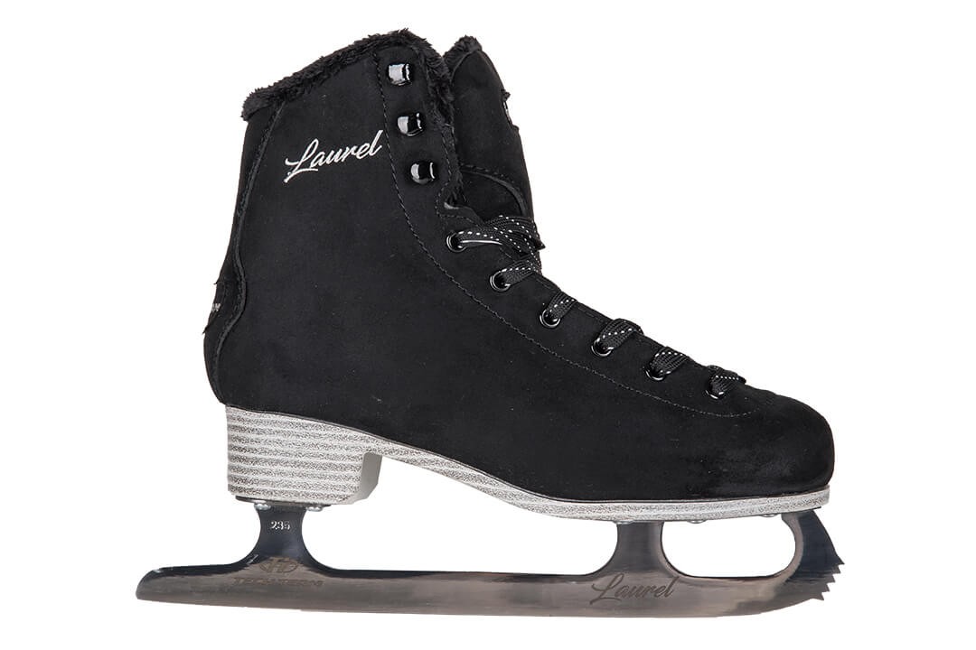 - Фигурные коньки из высококачественной реалистичной искусственной замши в черном цвете.