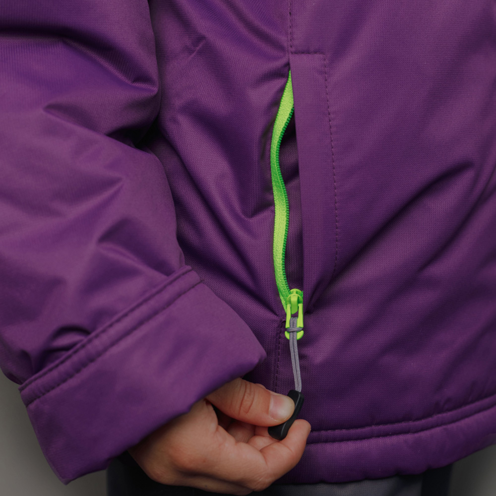 Цвет Фиолетовый с контрастной молнией Особенности куртки