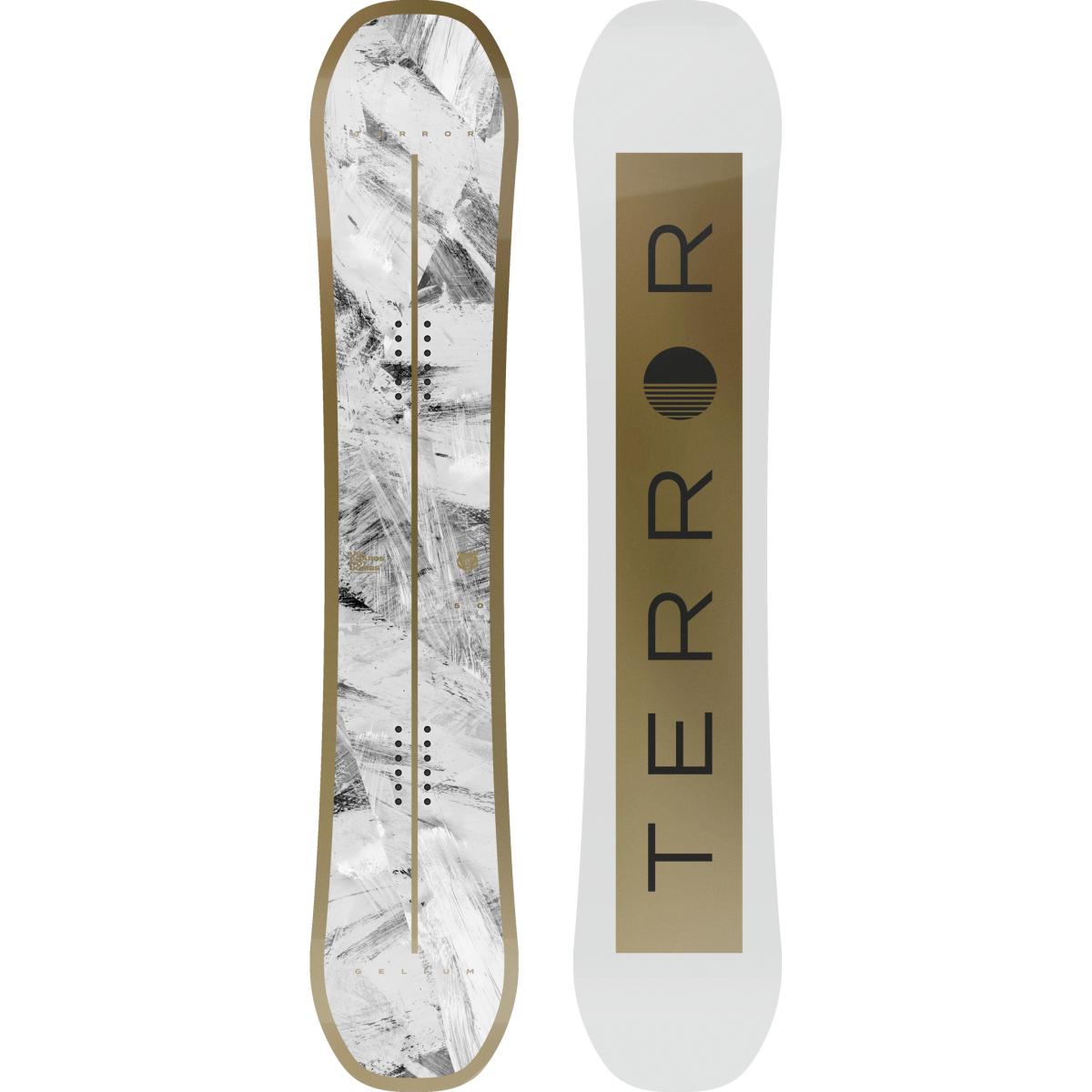Gelium — еще одна новинка в коллекции досок TERROR, которая была создана для катания в режиме All Mountain. Каждый сноуборд собран вручную, а его жесткость выверена специально для комфортного спуска с вершины горы по любой территории будь то вне трассового катания, скоростной пролет по вельвету или скольжение по фигурам в парке. И все это благодаря начинке! Два карбоновых стрингера, протянутых по всей длине доски, увеличивают щелчок и прочность, а триаксиальная стеклоткань сверху и снизу сердечника, придает в совокупности с остальными слоями доски среднюю жесткость 5 из 10. Кроме того, доска укомплектована не убиваемым топшитом с защитой от ультрафиолета и скользяком, сделанным из прочного материала p-tex 4400, облегчённым сердечником из павлонии, классическим кэмбером и технологией обрезанных краев, дающей большую площадь контакта со снегом, не увеличивая ростовку доски!