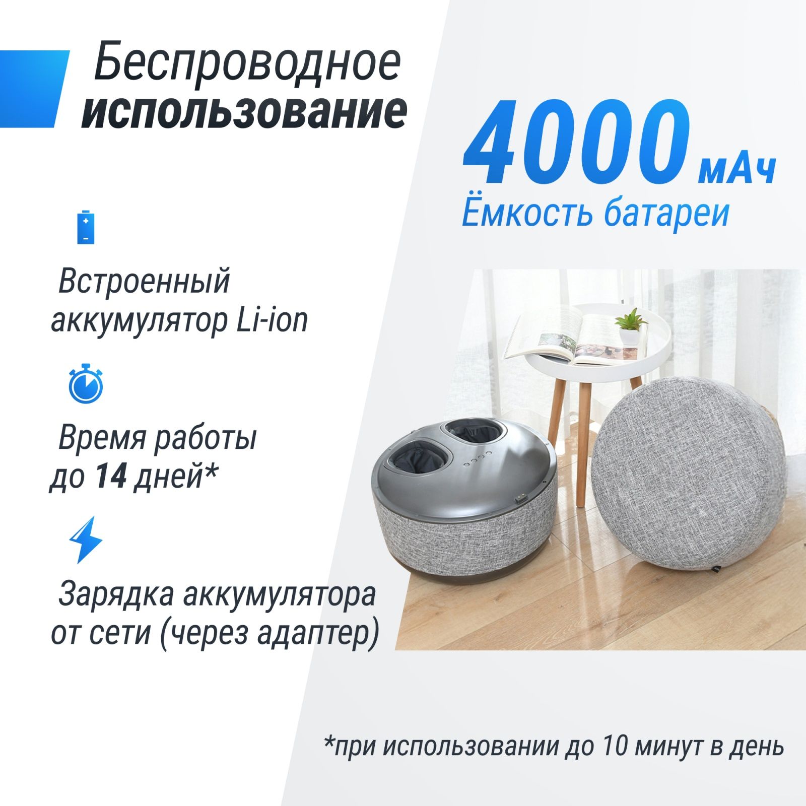 Не упустите возможность подарить себе и своим близким здоровье и комфорт! Электро массажер для ног — это не просто устройство, а личный помощник в борьбе с усталостью и стрессом!