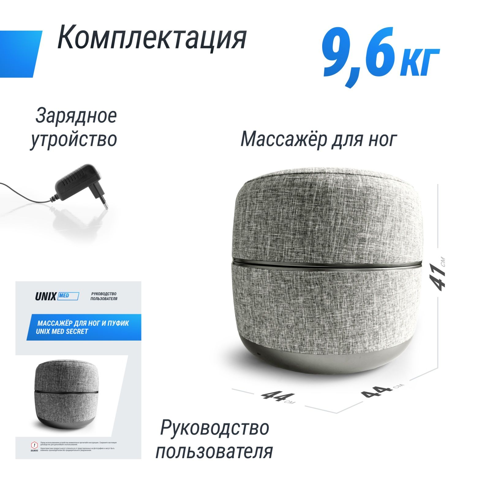 Массажер для ног и стоп предлагает различные программы и уровни интенсивности, что позволяет вам настроить массаж под свои предпочтения. Неважно, хотите ли вы легкий расслабляющий массаж или более глубокую проработку — наш массажер удовлетворит все ваши запросы. А возможность подогрева подарит дополнительный комфорт во время массажа. Сеансы массажа с UNIX Med Secret Pouf способствуют ускорению процесса восстановления после растяжений и травм, а также предупреждает возникновение варикозного расширения вен нижних конечностей.