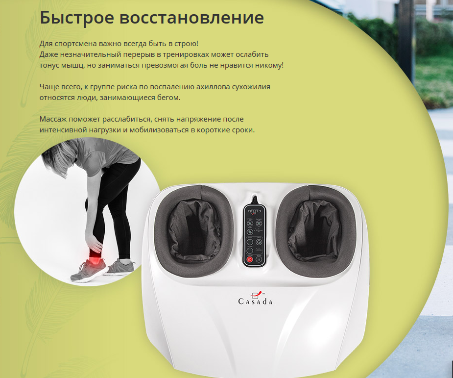 --Массажёр для ног Casada Reflexomed 2ВелосипедыТренажерыГироскутерыЛыжи и сноубордыТермобельеСамокатыБатутыИгровые столыМассажное оборудованиеСап БордыВелоформа, велоодеждаСпортивная одеждаКонькиВелоаксессуарыГоловные уборыПерчаткиНоскиРюкзаки и сумкиАксессуары для велосипедовФутбольная экипировкаЕдиноборстваЭлектросамокатыБаскетбольные стойкиБассейныДетские комплексыШведские стенкиГамаки и лежакиСадовые качелиБеседкиСадовые зонтыЭлектротранспортЧасы, пульсометрыВелозапчастиФутбольные воротаДартсТовары по уценке