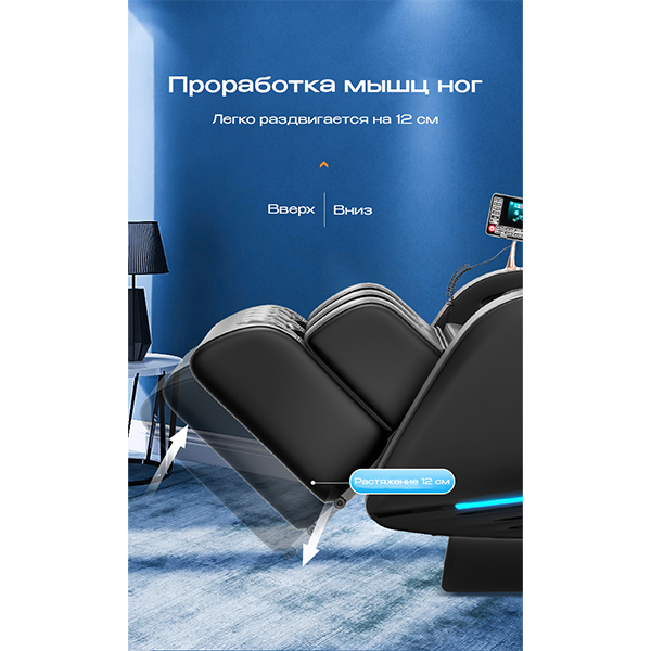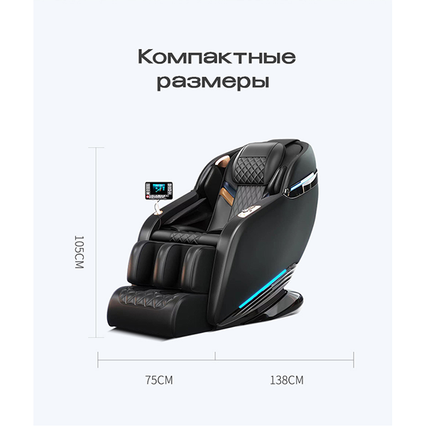 В кресле установлена продвинутая 8D-система массажа, которая сочетает в себе точные движения роликов с адаптацией к форме тела. Это обеспечивает глубину проработки мышц, приближенную к профессиональному ручному массажу.