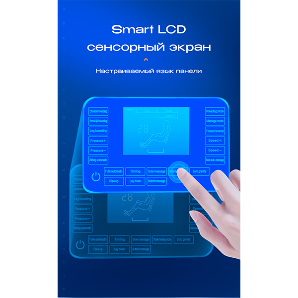 18 пневмоподушек деликатно воздействуют на плечи, руки, кисти, голени и стопы, улучшая циркуляцию крови и снимая усталость.
