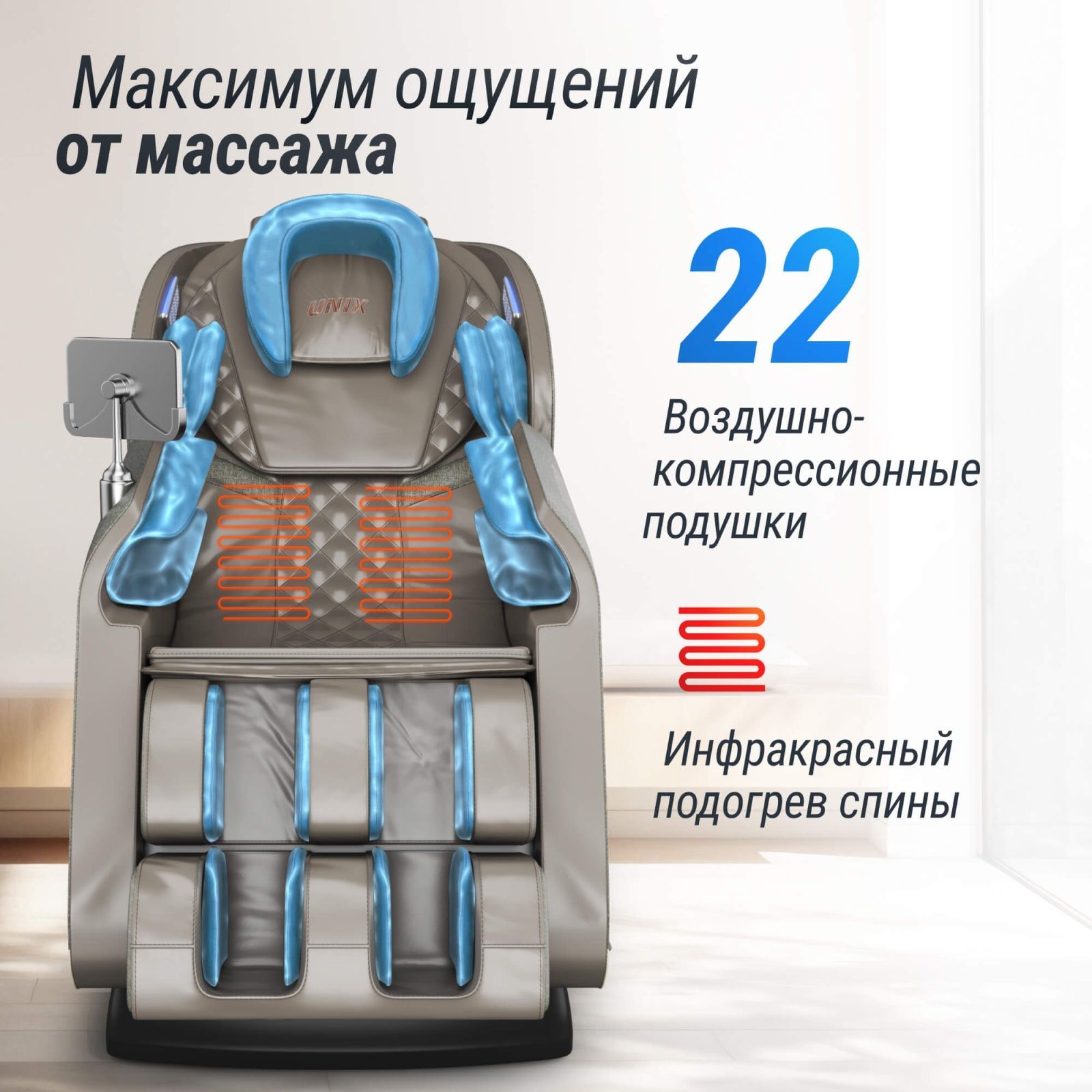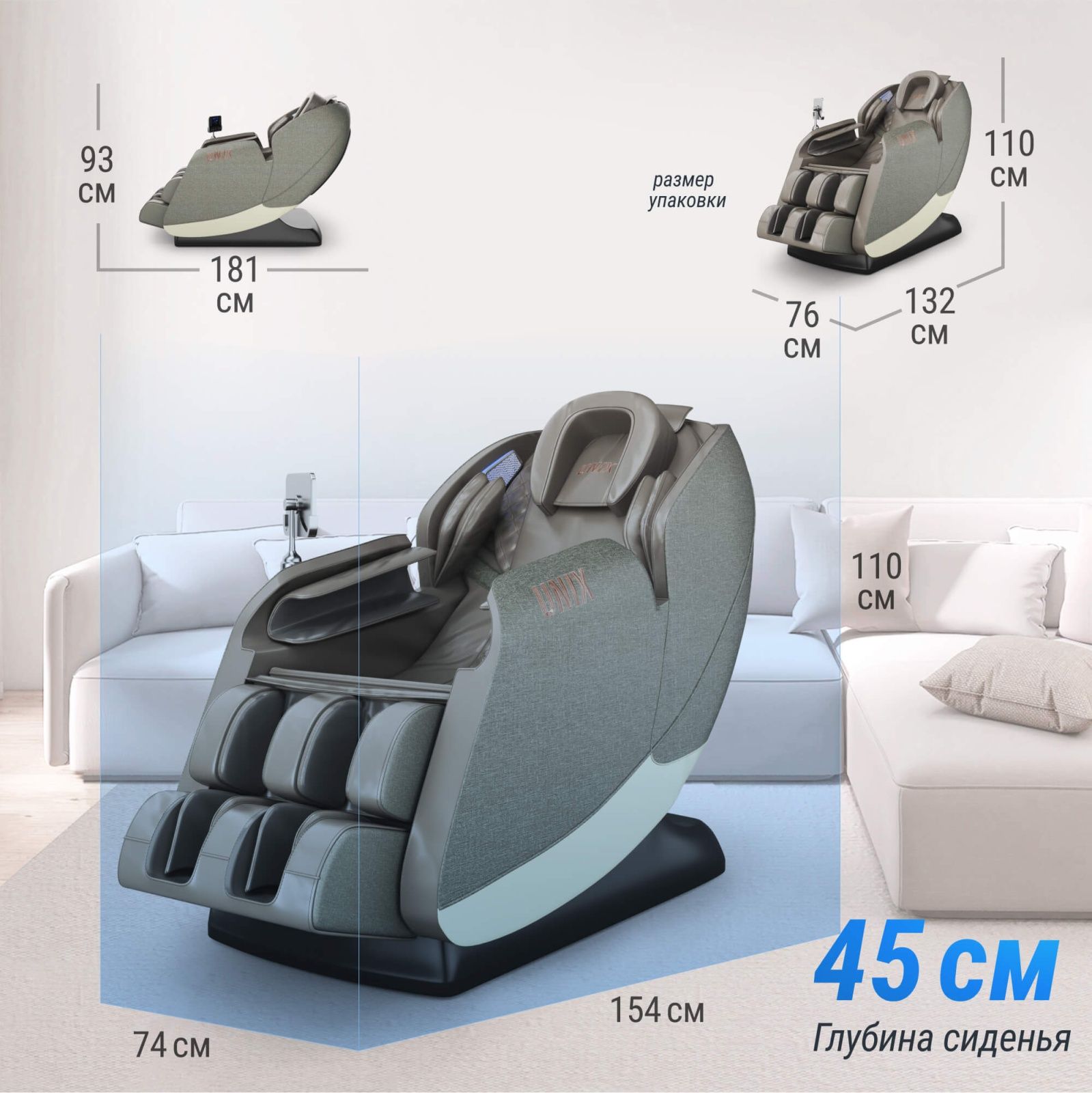 - Встроенные динамики позволят во время массажа слушать любимую музыку через Bluetooth со звуком Hi-Fi. Кресло позволяет синхронизировать вашу любимую музыку с массажным механизмом. Расслабьтесь под свою любимую музыку и получайте удовольствие с массажным креслом UNIX Med. Массажное кресло не только функционально, но и стильно. Элегантный дизайн и качественные материалы позволят ему гармонично вписаться в любой интерьер. А благодаря TFT экрану с удобными настройками и простым управлением вы сможете легко переключаться между режимами массажа, не вставая с кресла.