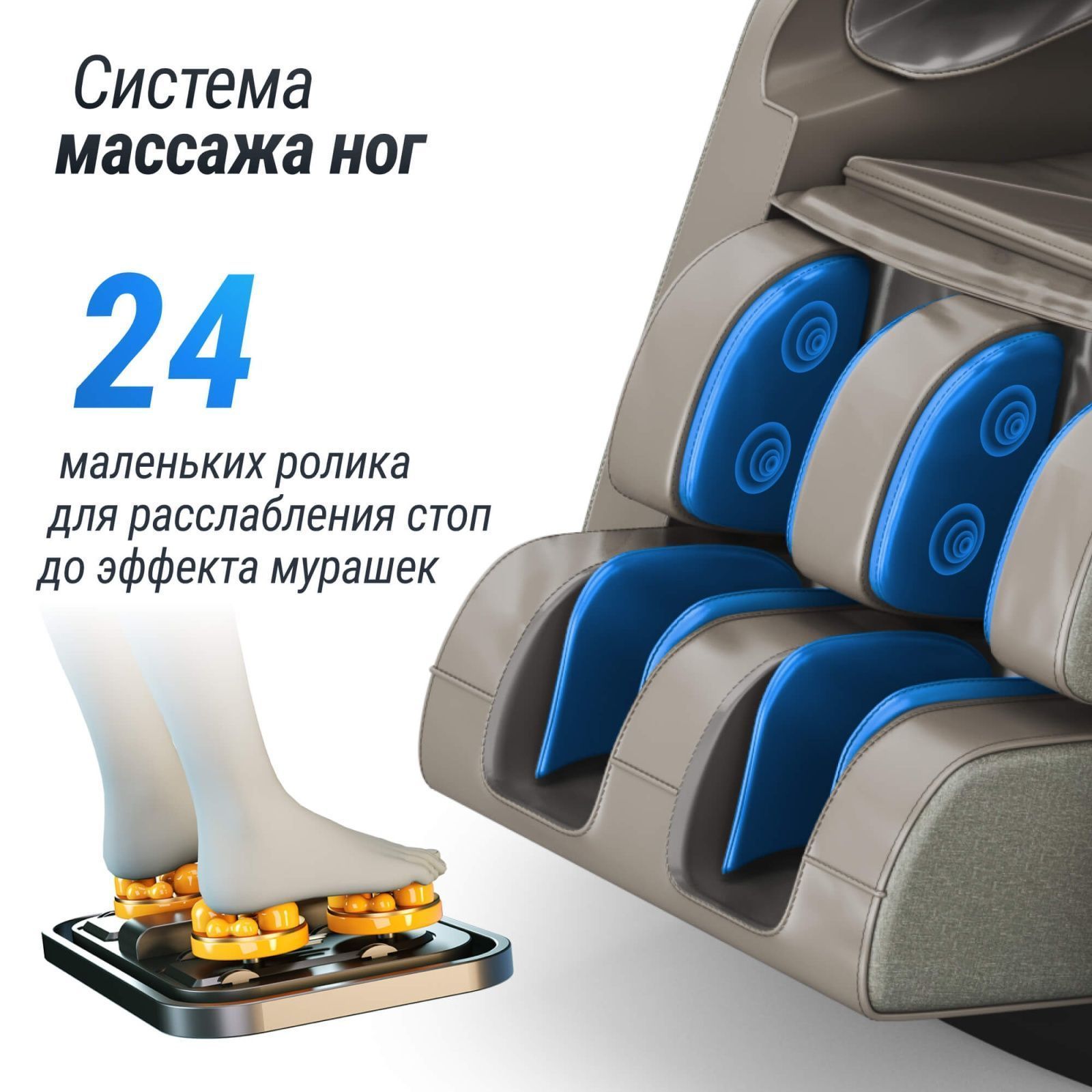 - Программы и режимы на выбор. Каждый человек уникален, и кресло это понимает! Вы можете выбрать один из нескольких автоматических режимов массажа – режим разминания, Шиацу, силовой режим, программа Расслабление мышц и режим Перед сном. Также вы можете выбрать программу автоматического аэромассажа или самостоятельно выбрать зону плеч и головы, рук или ног, а также настроить интенсивность воздействия. А функция подогрева спины подарит дополнительный комфорт во время сеанса. Теперь вы можете наслаждаться массажем, который подходит именно вам! Кресло для массажа включает в себя валики для стоп и ягодиц. Так же предусмотрены: ручной режим, режим Zero Gravity, режим запуска валика для ног или валика для ягодиц.