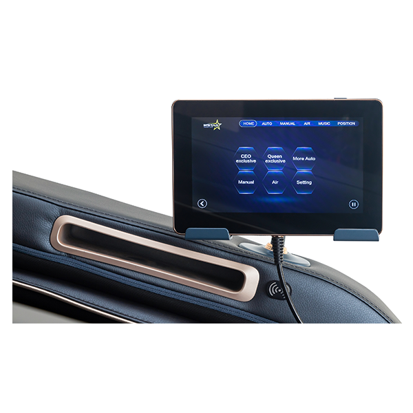 Кресло оснащено удобным пультом управления, позволяющим быстро выбрать одну из 12 предустановленных программ массажа или создать индивидуальный режим, соответствующий вашим потребностям. 7-дюймовый сенсорный дисплей с подсветкой упрощает использование кресла.