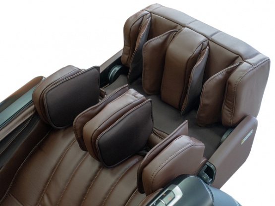 Удлиненная каретка увеличивает площадь роликового массажа, обеспечивает глубокий массаж шеи, плеч, поясницы и ягодиц. Вы по достоинству оцените эту конструктивную особенность массажного кресла.