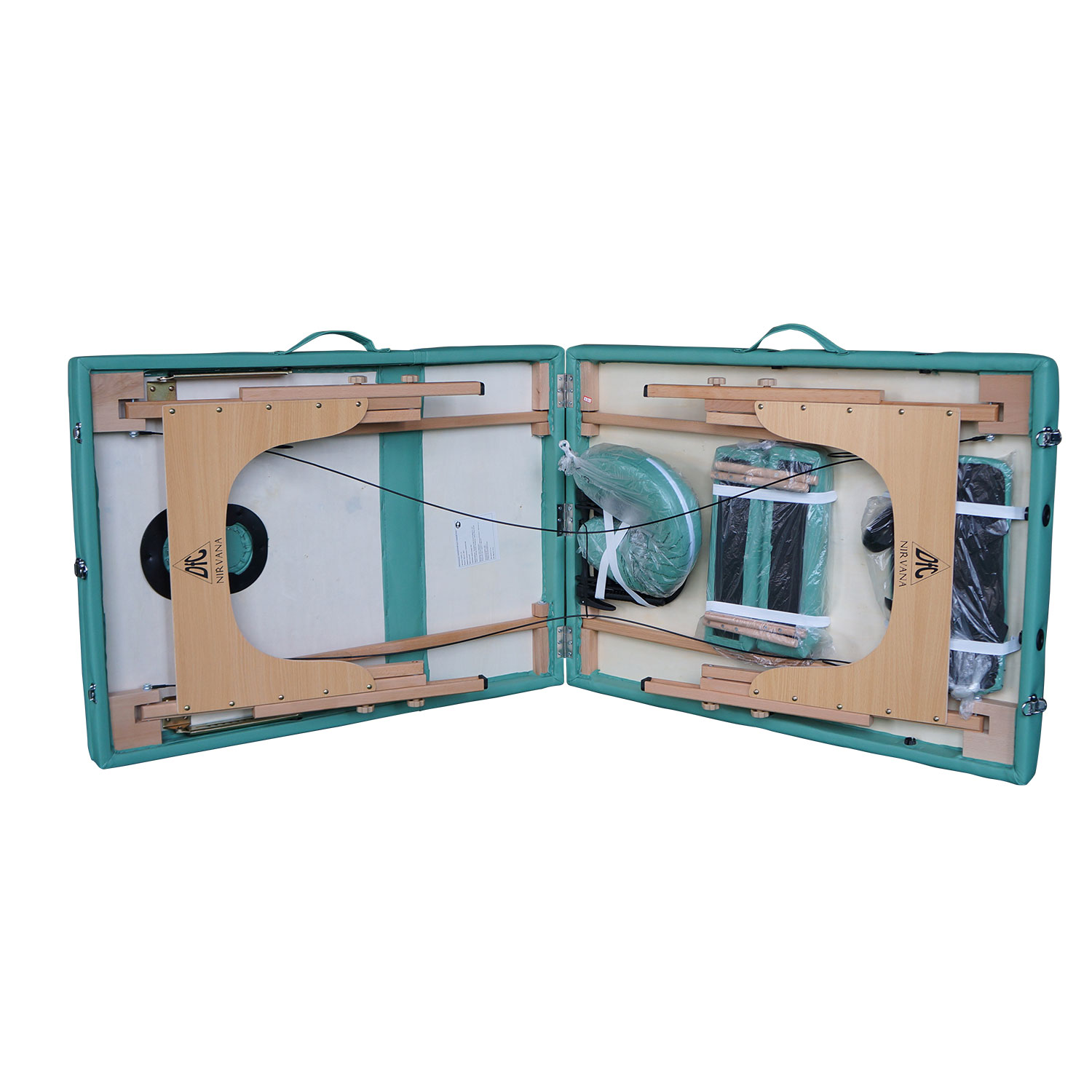 Складной 3-х секционный переносной массажный стол DFC NIRVANA Relax Pro (Green). Изготовлен из высококачественных компонентов. Идеально подходит для домашней эксплуатации.