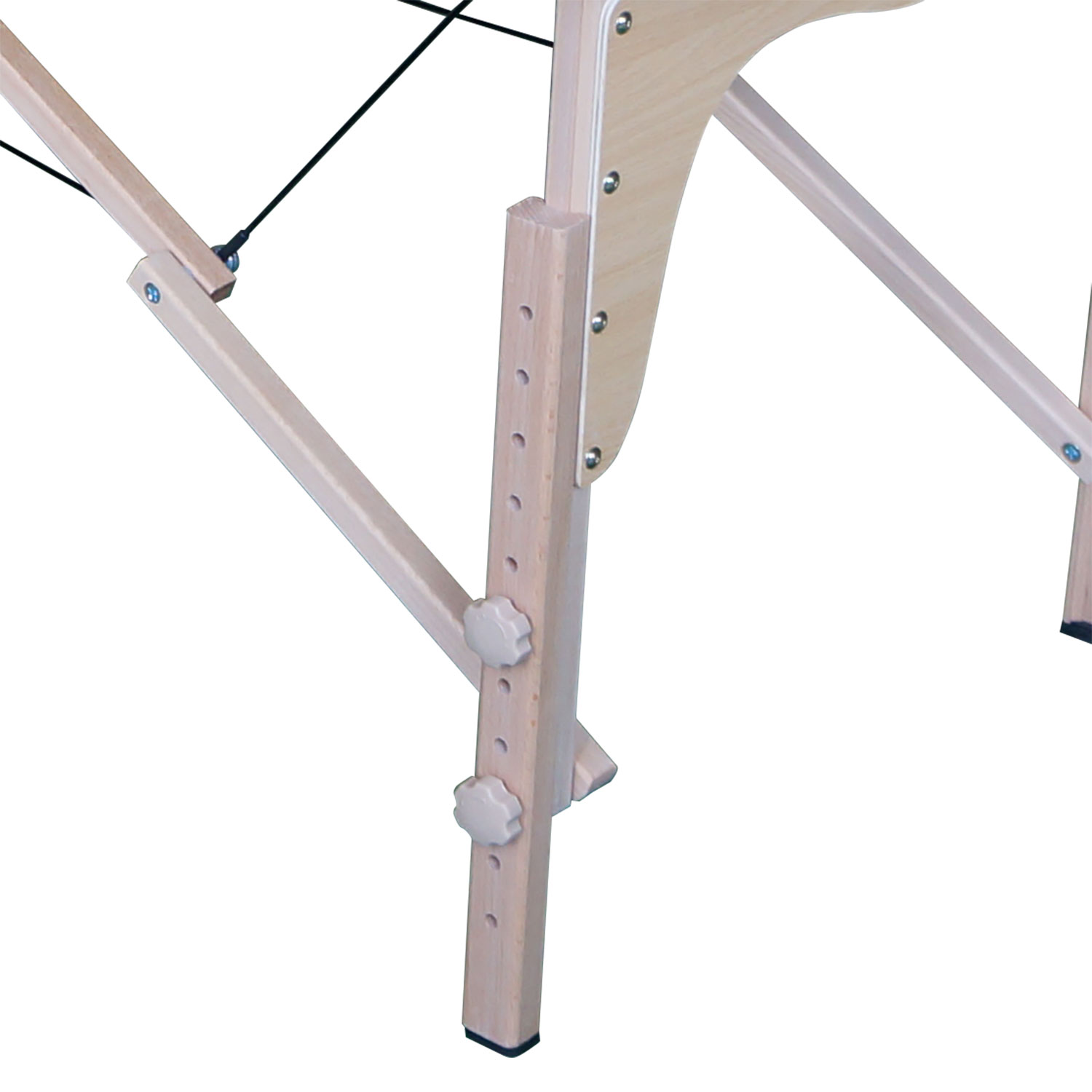 Благодаря применению бука в конструкции рамы вес стола существенно облегчен и составляет 13 кг. Имеет складную конструкцию. Удобен для хранения и транспортировки. В комплект входит сумка-чехол для переноски.