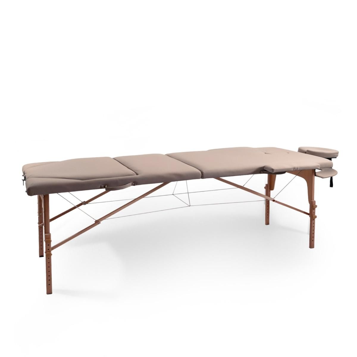 Деревянная кушетка для массажа выделяется невероятно прочной конструкцией, способной выдержать общую нагрузку до 250 кг (не перегружайте стол сверх рекомендованного предела веса). Благодаря своим компактным размерам 182 х 69 см, она идеально впишется даже в самые небольшие помещения. Возможность ручной регулировки высоты ножек от 61 до 81 см с шагом 3 см позволяет адаптировать стол под рост массажиста, обеспечивая наилучшую результативность сеансов массажа. Ложе толщиной 7 см обеспечит дополнительную поддержку и комфорт. Для еще большего удобства массажного стола в комплекте предусмотрены регулируемый по наклону и высоте подголовник и подставка для гаджетов, расположенная у изголовья, а также боковые подлокотники.
