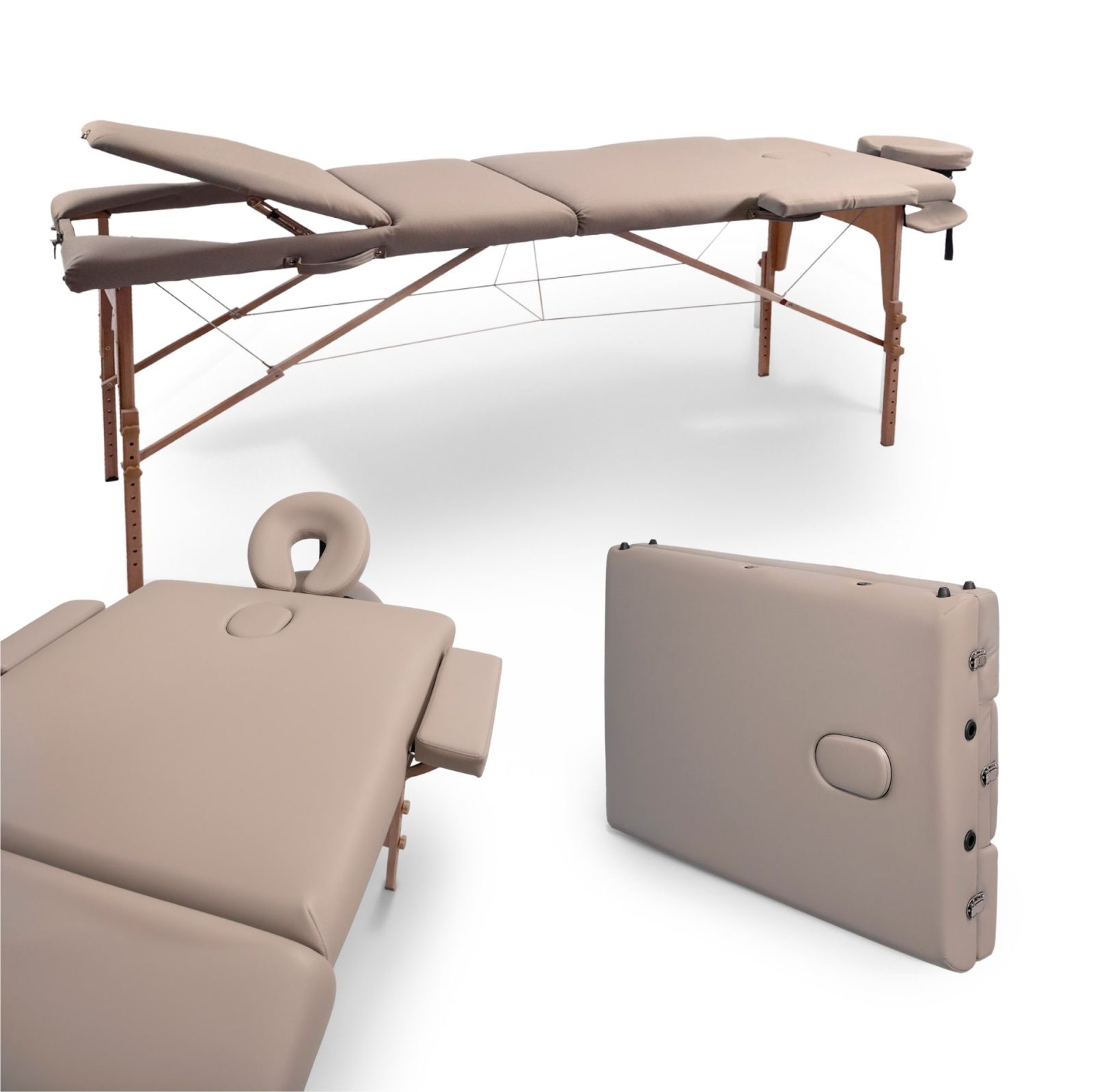 Уход за столом прост и удобен. Обивку можно ежедневно чистить мягким моющим средством и теплой водой, после чего протирать сухой тряпочкой без ворса. Каркас стола не нуждается в особом уходе. Конструктивные особенности стола направлены на обеспечение легкого доступа ко всем зонам тела клиента, что способствует максимальной эффективности процедур. Анатомически правильное расположение отверстий и подголовников снижает напряжение и усталость мышц клиента.