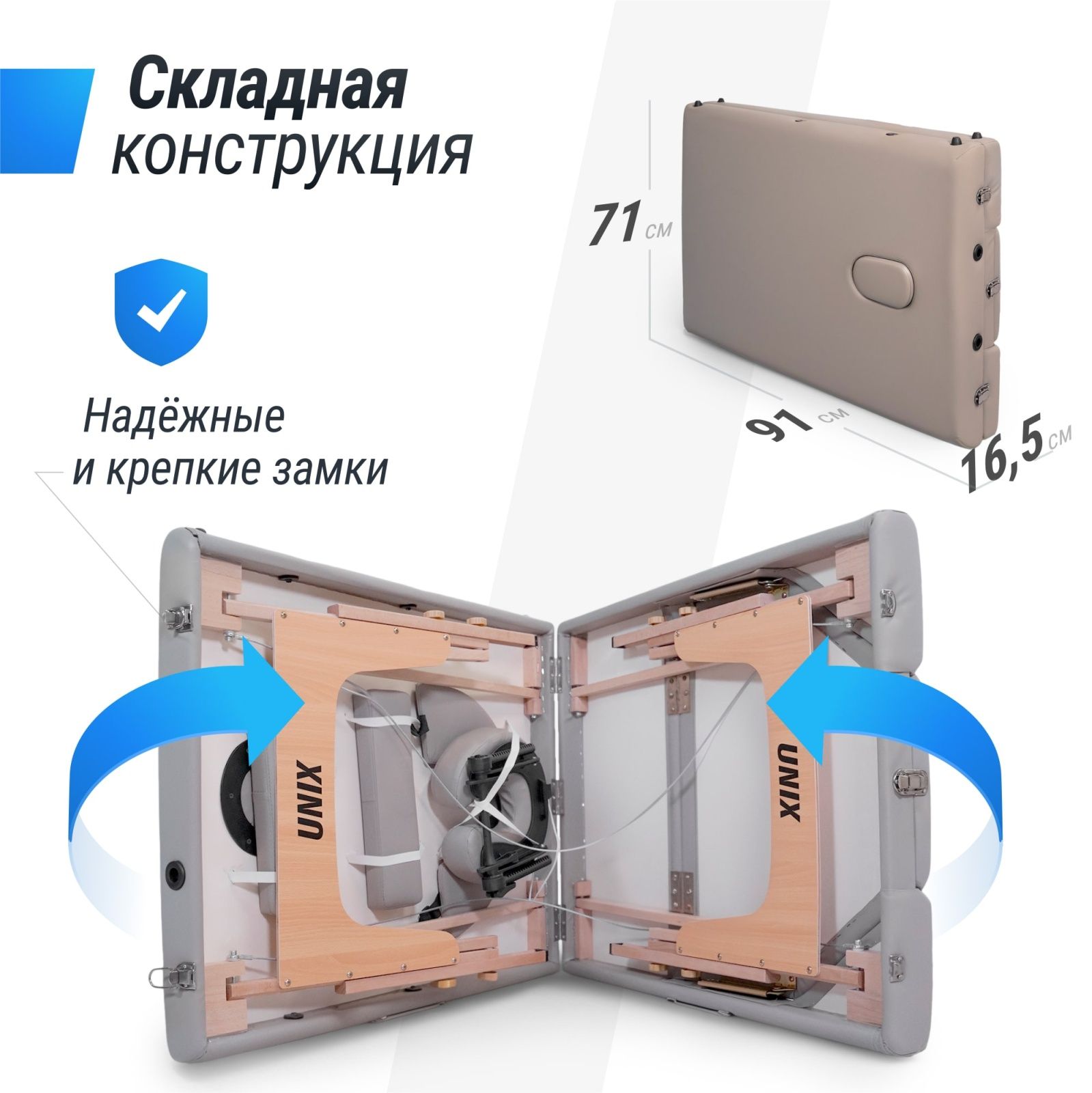 ОписаниеМассажный стол UNIX Serenity 3 Section — истинное воплощение функциональности, комфорта и долговечности. Этот трехсекционный стол для массажа незаменим как в профессиональной деятельности, так и для домашних сеансов. Компактные размеры и удобная система складывания позволяют разместить его в любом помещении, будь то СПА-салон, массажный кабинет, студия тату или даже ваш личный уголок релаксации дома. Стол обеспечивает максимум удобств как специалисту, проводящему процедуру, так и человеку, которому она предназначена. Продуманная конструкция модели обеспечит максимальный комфорт клиенту во время массажа спины, шеи и ног. В спинке есть удобное анатомическое отверстие для лица.