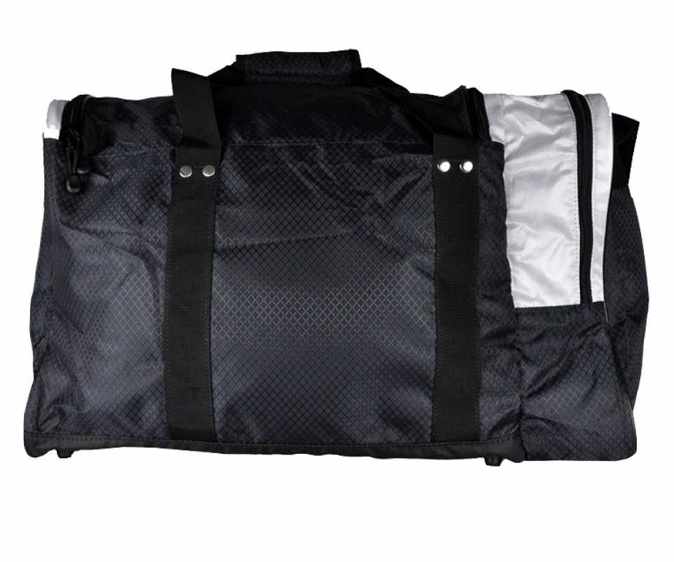 Это Универсальная спортивная сумка среднего размера. Большое прямоугольное отделение на молнии, боковое отделение для небольших вещей или пары обуви.- Удобная сумка для спортивной экипировки.