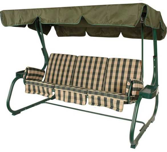 00000002108 Статус товара: В наличии Тип: КЧ-07, 3-х местные раскладные Габариты: 2,37 х 1,40 х 1,70 м Диаметр несущей трубы: 0,051 м Размеры и материал сидения: 1,75 х 0,53 м, оцинкованная сетка Допустимая нагрузка: 250 кг Масса изделия: 56 кг Комплектация: каркас, текстильный набор 3-х местный, подстаканники, водоотталкивающий тент Возможные цвета: зелёный Размеры упаковки: 1 место 2,20 х 0,68 х 0,18 м 2 место 1,13 х 0,60 х 0,24 м Характеристики