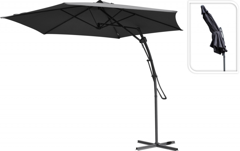 Зонт садовый складной диаметр 380 см материал стойки - металл, тип- купол материал ткани - водонепроницаемая ткань полиэстер, цвет - темно-серый; "Koopman International b.v." Место нахождения Нидерланды