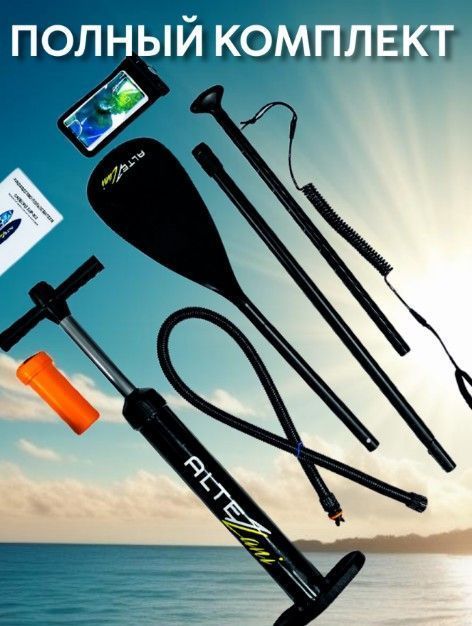- Комплектация: центральный плавник, насос, чехол для телефона, сумка, держатель, весло