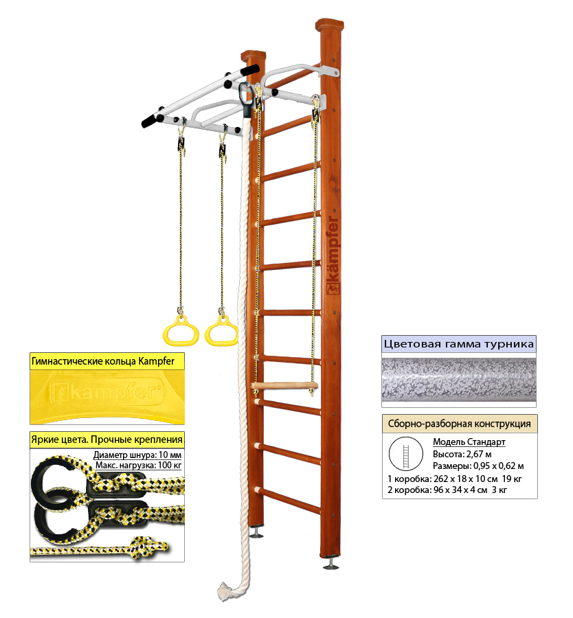 — турник, трапеция, канат, кольца гимнастические.— Новинка! Новая цветовая гамма и высота модели на выбор!