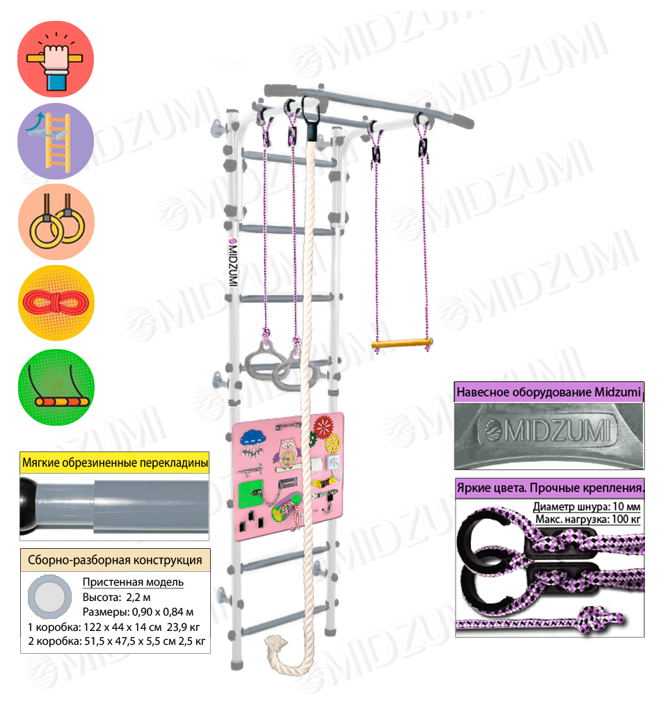 Детский спортивный уголок для дома – это не только про подростковые увлечения спортом. Малыши тоже могут приобщиться к занятиям спортом, ведь теперь это более чем доступно! В шведской стенке Midzumi Hoshi Kabe Busyboard объединены две функции: помощь в укреплении здоровья и развитие необходимых в жизни навыков, что делает такую покупку долгосрочной инвестицией в детей.