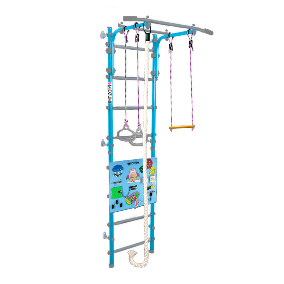 Комплектация: основа - металлическая шведская стенка с турником, гимнастические кольца, канат, трапеция, бизиборд