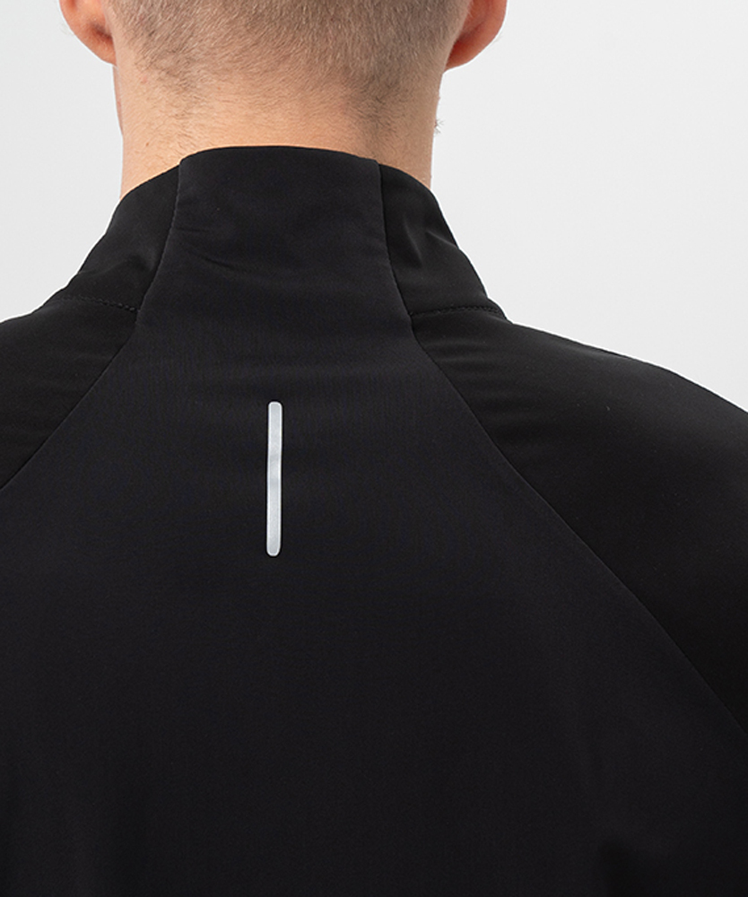 Проклеенные швы (рукава и низ куртки). Анатомический крой: куртка плотно облегает тело, обеспечивая максимальную свободу движений. Эластичные вставки: Специальные вставки под мышками, на рукавах и спине улучшают вентиляцию и комфорт во время интенсивных тренировок. Удобные карманы: Один карман на груди и карман на спине на молнии для хранения необходимых мелочей. Защита для подбородка: Застежка-молния с защитой для подбородка предотвращает раздражение кожи. Светоотражающие элементы обеспечивают видимость в условиях низкой освещенности, что особенно важно для вечерних тренировок.