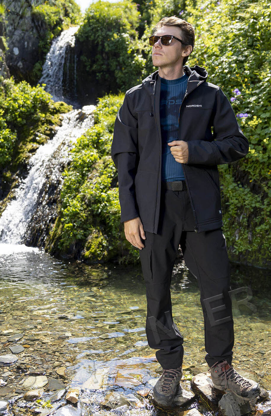 Элитный ветрозащитный мембранный костюм Nordski Trekking Black мужской подойдёт для