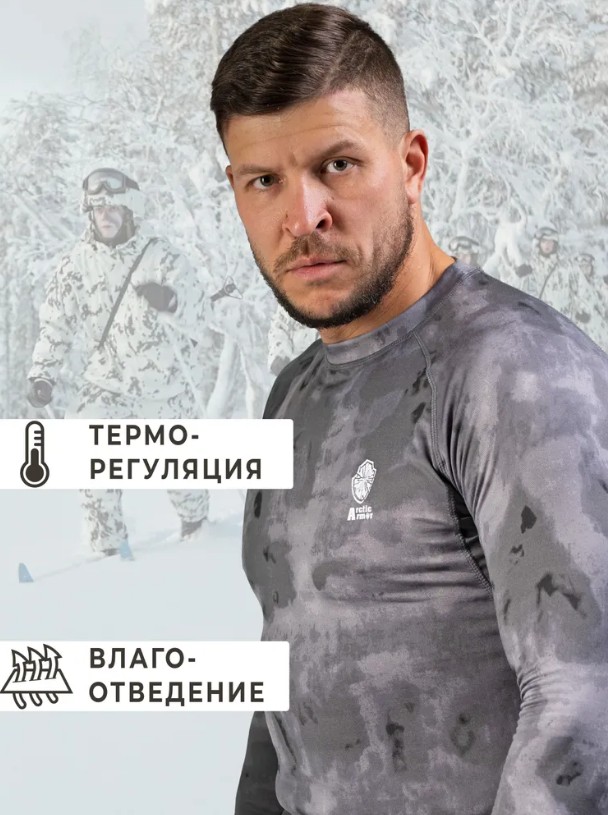 Функциональное мужское термобельё Arctic Armor подходит для активных физических нагрузок, тактических дисциплин, охоты и рыбалки. Термобельё сочетает в себе влагоотводящие и термические свойства, очень хорошо отводит влагу, но, благодаря внутреннему слою из микрофлиса, у него высокие тепловые характеристики. Температурный режим от +10 до -20 градусов. Состав: полиэстер 92%, спандекс 8%. Кроме термобелья, на Вас должна быть надета сезонная верхняя одежда, соответствующая виду Вашей активности. Зимой понадобятся флисовая толстовка и утепленные брюки. Рекомендации по уходу: Стирка не выше 40 градусов, минимальные обороты, применяйте дополнительное полоскание, не используйте кондиционер, избегайте сушки с нагревом, не гладьте термобелье утюгом. Комплект термобелья Arctic Armor – отличный подарок для мужчины на любой праздник. Приходит в стильной коробке.