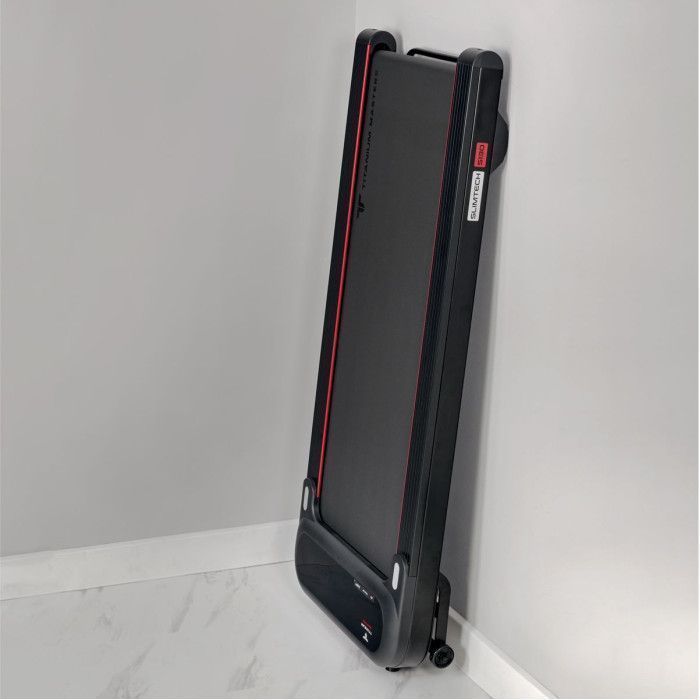 Беговая дорожка Titanium Masters Slimtech S130 требует минимум места для использования и хранения. В рабочем состоянии размер тренажера составляет 133 см. в длину и 56 см. в ширину – даже в самой малогабаритной квартире легко найдется место для тренировки. В сложенном виде толщина беговой дорожки составляет всего 16 см – ее можно положить под кровать или прислонить к стене в горизонтальном виде, для этого предусмотрены специальные прорезиненные опоры.