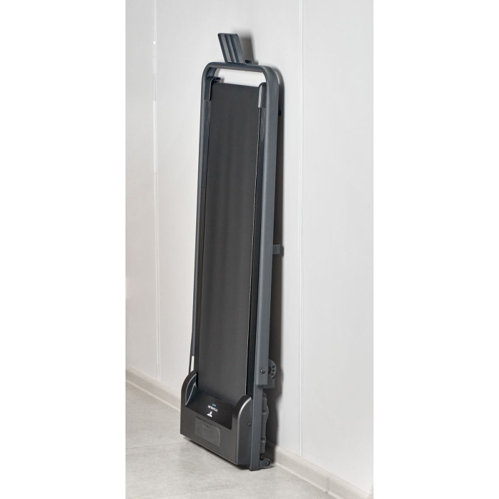 Titanium One T22 SH APP требует минимум места для использования и хранения. В рабочем состоянии размер тренажера составляет 135 см. в длину и 56 см. в ширину – даже в самой малогабаритной квартире легко найдется место для тренировки. В сложенном виде толщина беговой дорожки составляет всего 12 см., ее можно положить под кровать или прислонить к стене в горизонтальном виде. Стойки консоли крепятся на 2-ух винтах-барашках, процесс сборки и разборки займет около минуты. Учитывая вес дорожки всего в 17 кг. и наличие транспортировочных роликов, переместить тренажер не составит труда даже хрупкой девушке. Тренироваться на беговой дорожке можно как с поручнями, так и без. Поручни помогают не только удерживать равновесие - они также оборудованы держателем для мобильных устройств, куда можно установить смартфон или планшет. Это приятная опция - сериал или музыка отлично помогают справиться с рутиной и однообразием тренировок.