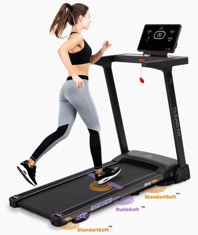 Беговая дорожка для дома Clear Fit серия CrossPower модель CT 460 MI. Оптимальный выбор для комфортных домашних тренировок бегом и ходьбой: просторное полотно 450 х 1200 мм, 3 уровня угла наклона, мощный двигатель и качественная амортизация. Надежный, бесшумный двигатель беговых дорожек серии CrossPower развивает скорость в диапазоне от 0.8 км/ч до 14 км/ч, плавное изменение и стабильное движение на всех оборотах. Прочная дека и усиленная конструкция рассчитаны для пользователей до 140 кг. Двойная система амортизации по периметру от ударной нагрузки для суставов и позвоночника обеспечивает комфортные безопасные ходьбу и бег, современная система амортизации подходит для любого возраста.