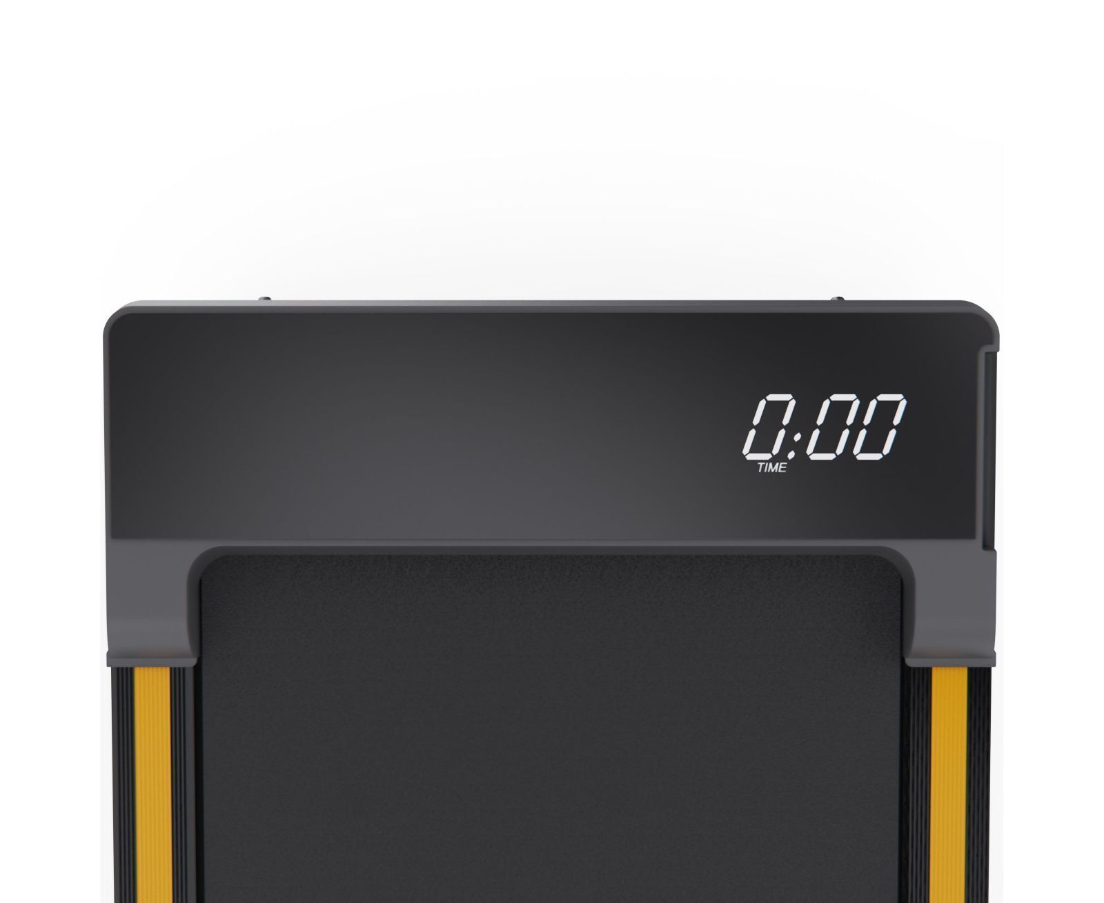 На встроенном LED-дисплее отображаются основные параметры тренировки: время, скорость, пройденная дистанция и количество сожжённых калорий, что позволяет контролировать процесс занятий. Управление дорожкой осуществляется с помощью пульта дистанционного управления, с которого можно включать и выключать питание, а также регулировать скорость без остановки тренировки.