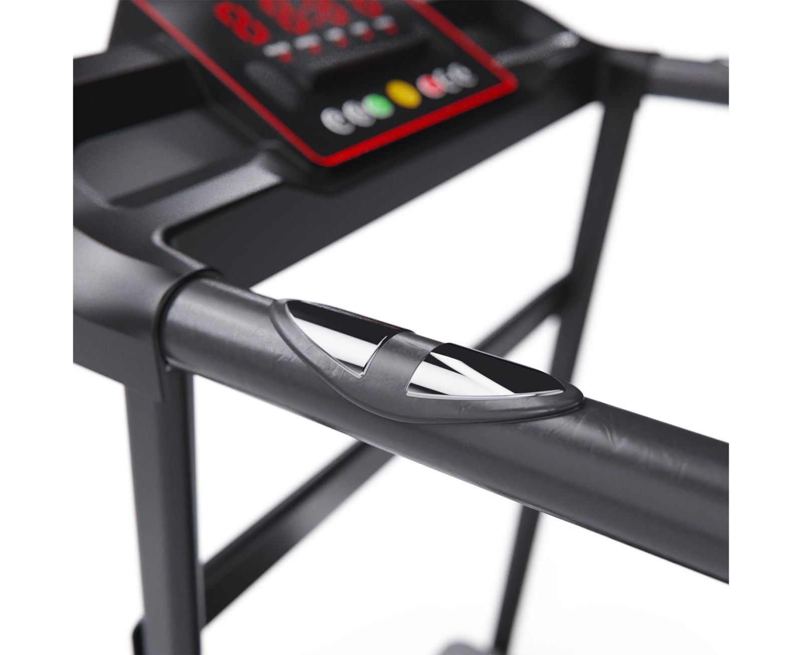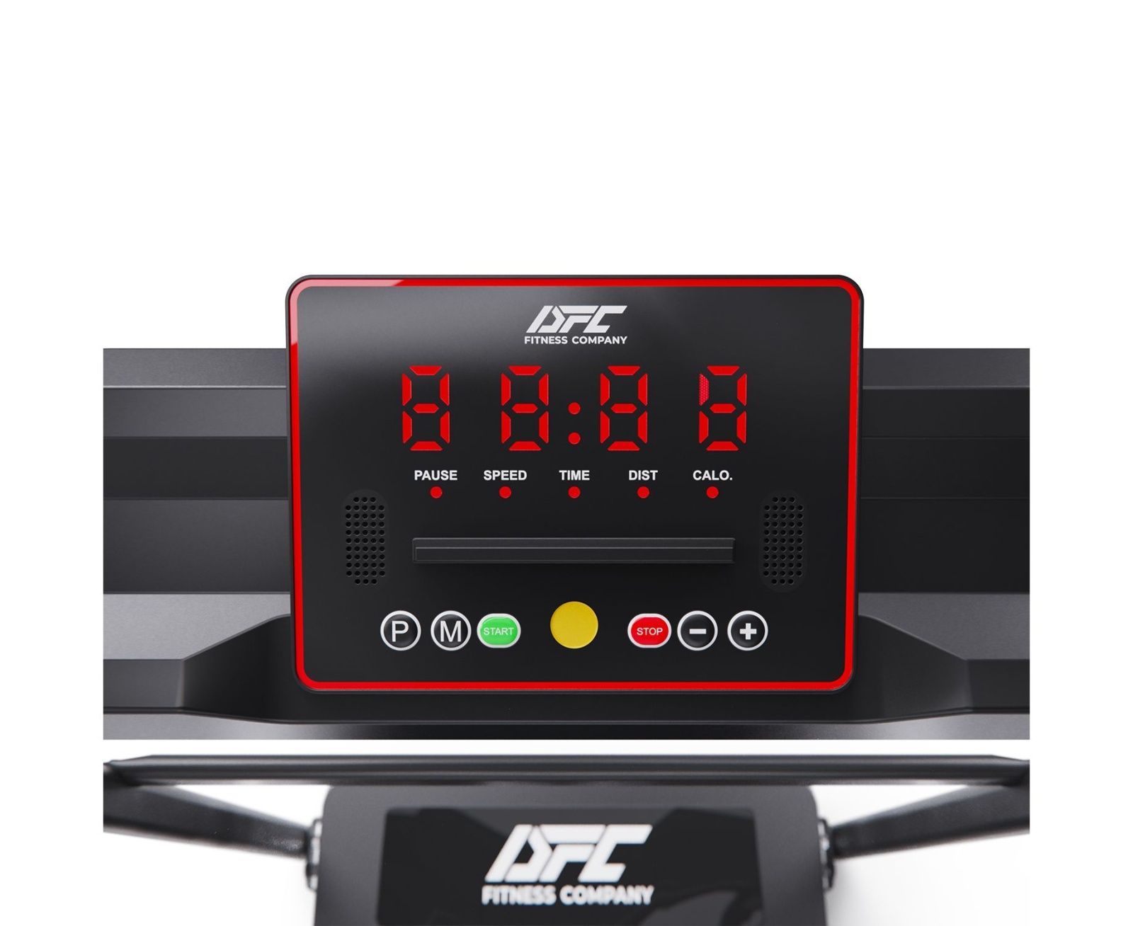 Беговая дорожка оснащена монохромным LCD-дисплеем, который отображает ключевые параметры: скорость, дистанцию, время, калории и пульс. Измерение пульса осуществляется с помощью сенсорных датчиков на поручнях. Для разнообразия тренировок предусмотрено 12 предустановленных программ, а также одна пользовательская программа, что позволяет вам настроить занятия под свои цели.