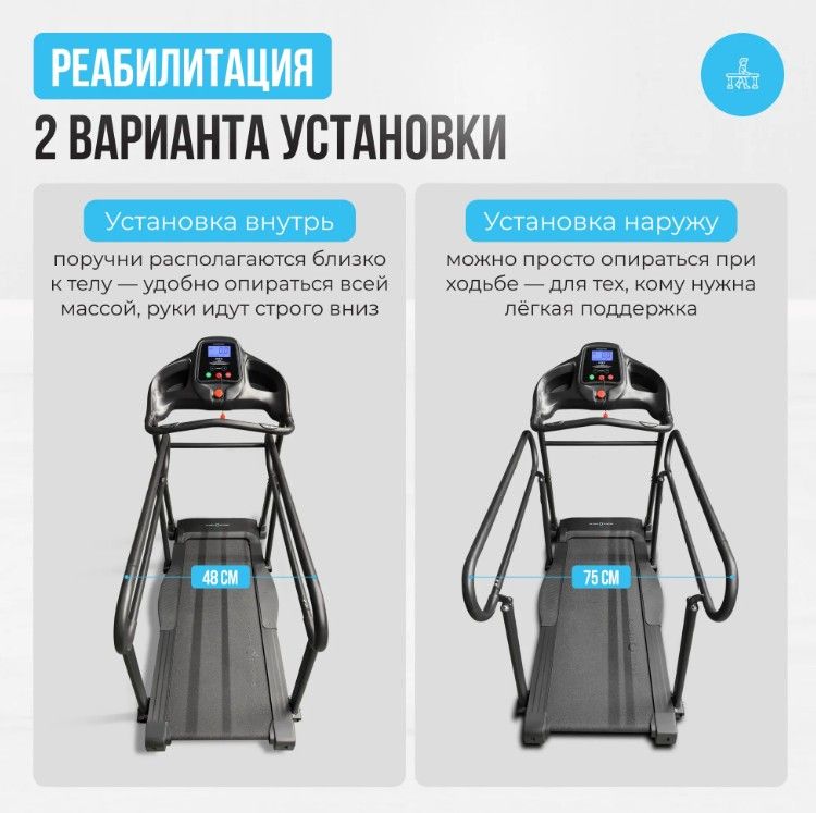 ХарактеристикиБренд Oxygen Fitness Артикул REVIVE_B Назначение домашнее Тип беговой дорожки электрическая Двигатель 2.0 л.с. DC Fuji Electric Пиковая мощность двигателя, л.с. 4.0 DC Скорость, км/ч 0,3 - 10 Максимальный вес пользователя 130 Беговое полотно 1.4 мм антискользящее Длина бегового полотна, см 130 Ширина бегового полотна, см 46 Материал деки МДФ, парафинированная Толщина деки 15 мм Система амортизации 4 cиликон-гелиевые амортизирующие подушки ortho-Deck Masters™, 4 плоских эластомера Natural™ Измерение пульса есть Консоль LCD Тип консоли LCD дисплей с голубой индикацией Показания консоли время, скорость, дистанция, калории, пульс Общее количество программ ручной режим Спецификация программ быстрый старт, ручной режим Интеграционные технологии Bluetooth для работы с тренировочным мобильным приложением (Fitshow™, Kinomap™, Zwift™) Язык интерфейса русский, английский Транспортировочные ролики Да Компенсаторы неровностей пола Да Дополнительные функции сенсорные датчики на поручнях, возможность подключения кардиодатчика Bluetooth через фитнес-приложения Дополнительные особенности тренажера подходит для реабилитации, отсеки для аксессуаров, ключ безопасности, поручни с антискользящим покрытием, страховочный ремень, кнопка экстренной остановки Вес нетто, кг 68 Вес брутто, кг 85 Подключение к сети 220 В Производитель Fitathlon Group (подразделение в Германии) Страна изготовления КНР Размеры: Размер в рабочем состоянии, см. 158х84x134 Размеры упаковки, см. 177х82x45 Характеристики