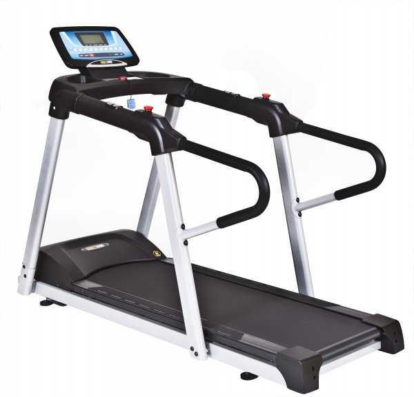 Разработанная для реабилитации людей с ограниченными возможностями. Тренажер работает в диапазоне от 0,3 км до 10 км с шагом изменения 0,1км. Беспроводной датчик для беспрерывного измерения пульса входит в комплект поставки. Беговая дорожка имеет специализированные удлиненные поручни, оборудованными дополнительными кнопками для быстрой остановки. Тренажер отображает на мониторе все необходимые параметры тренировки для полного контроля. Данная модель имеет универсальную складную подставку для Ipad или книги.