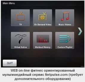 - сбор данных состояния тренажера (WI-FI->роутер Asset Management™->Johnson WEB online), сбор и анализ данных пользователя (USB->ПК->Livestrong WEB online)