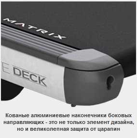 Добавиласьвозможность использования WI-FI модуля для комплексного слежения заэксплуатацией и автоматического определения поломок. Интересным такжепредставляется набор WEB on-line сервисов развлекательной и фитнес-специализированнойнаправленности. Адаптивныйотклик на вес пользователя и скорость тренировки. Практически это выражается втом, что для пользователей с большим весом, на любой скорости тренировки вплотьдо 24 км./ч., полотно движется абсолютно равномерно. Амортизационная платформаUltimate Deck System является одной из лучших подобных систем в мире с точкизрения демпфирующих свойств, качества и надежности. Ее характерной особенностьюявляется поддержание одинакового уровня амортизации на всем диапазоне скоростей.Дорожки других производителей зачастую страдают повышенной"прыгучестью" на высоких скоростях - а это не только некомфортно, нои небезопасно.
