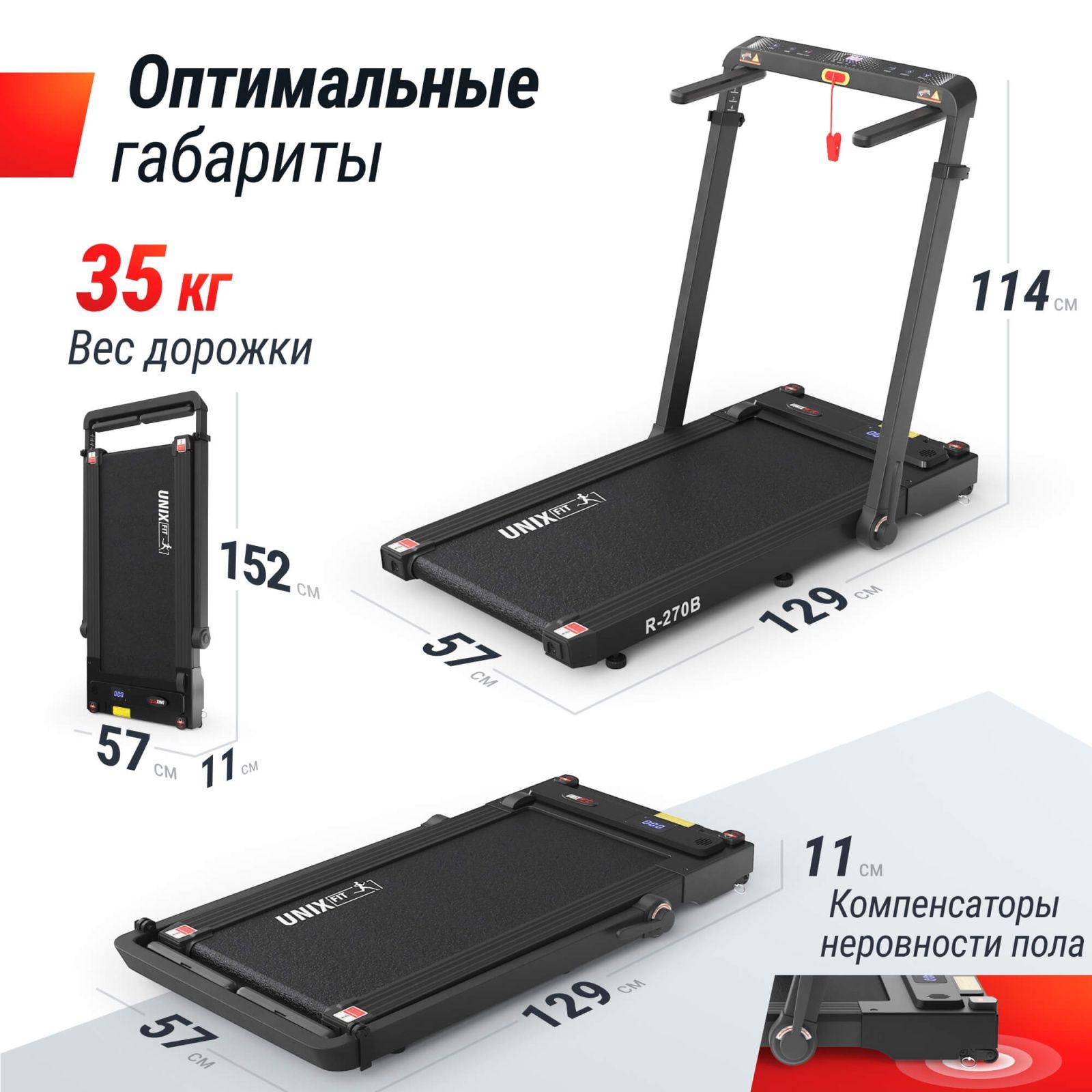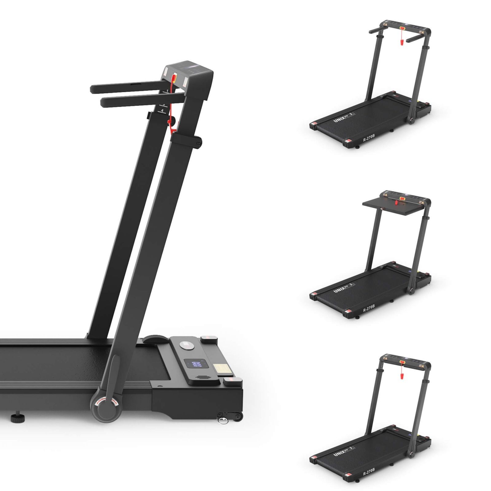 ОписаниеБеговая дорожка электрическая для дома UNIX Fit R-270B со столиком и регулируемыми поручнями — ваш универсальный тренажер для похудения, сочетающий функциональность, удобство и заботу о вашем здоровье! Модель R-270B идеально подойдёт каждому члену семьи благодаря индивидуальной настройке по высоте и широкому диапазону возможностей.