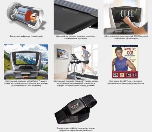 - виртуальный ландшафт Virtual Active™ (2 предустановленных HD видео), индивидуальный календарь пройденных тренировок