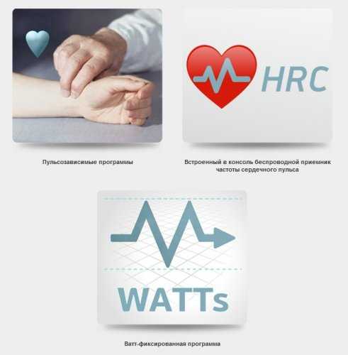 - ручной режим, интервалы, снижение веса, фитнес тест, 5 км., 10 км., Sprint 8™, 2 целевые (калории и дистанция), 4 пульсозависимые