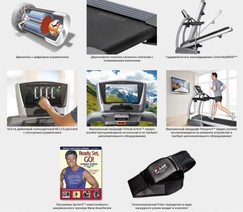 - виртуальный ландшафт Virtual Active™ (2 предустановленных HD видео), индивидуальный календарь пройденных тренировок