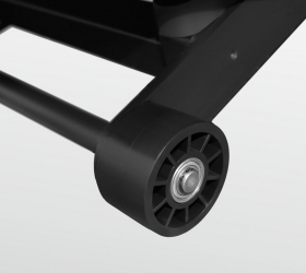 BRONZE GYM T960 PRO TFT - профессиональная беговая дорожка для использования в тренажерных залах с любой проходимостью в режиме 24/7. Надежный двигатель мощностью 4.5 л.с. переменного тока (7.2 л.с. в режиме пиковой мощности) от японской Fuji Electric разгоняет полотно до 20 км/ч. Размеры беговой зоны составляют 155 см в длину и 60 см в ширину. Ортопедическое полотно Habasit NVT-232 толщиной 3.2 мм рассчитано на серьезную коммерческую эксплуатацию. Усиленная парафинированная дека толщиной 25 мм имеет специальные сертификаты технических и экологических директив EO/ROHS (ЕС) и 4 STAR GRADE F (Япония). Мультиабсорбирующая динамическая система амортизации на основе изменяемых эластомеров antiSHOCKwave™ имеет 2 зоны жесткости. Передняя и центральная часть беговой зоны (то есть там, где идет основная ударная нагрузка на ноги) настроены на более мягкую амортизацию. Задняя часть, в зоне отрыва стопы, - на более жесткую.