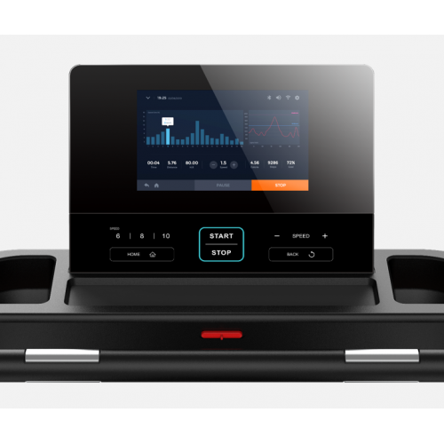 Усиленная MFD дека с системой эластомеров и антискользящие боковые направляющие обеспечивают безопасность и высокий комфорт тренировок, снижая ударную нагрузку на суставы и позвоночник. Интуитивно понятный информативный TFT дисплей, диагональю 10,1’ позволяет легко и удобно управлять беговой дорожкой.