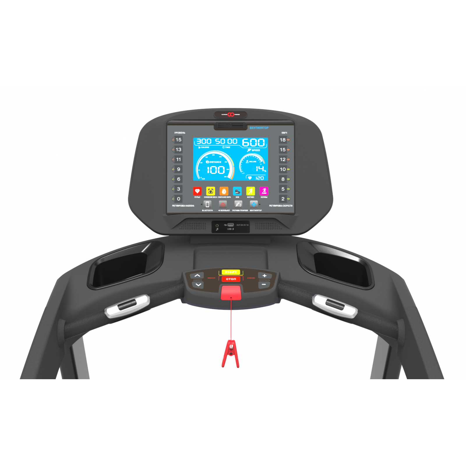 · Удобная консоль с клавишами быстрого управления и широким 8-ми дюймовым LCD дисплеем с мягкой голубой подсветкой предоставляет полную информацию о текущих показателях тренировки: скорость, время, расстояние, калории, угол наклона, частота пульса, выбранная программа