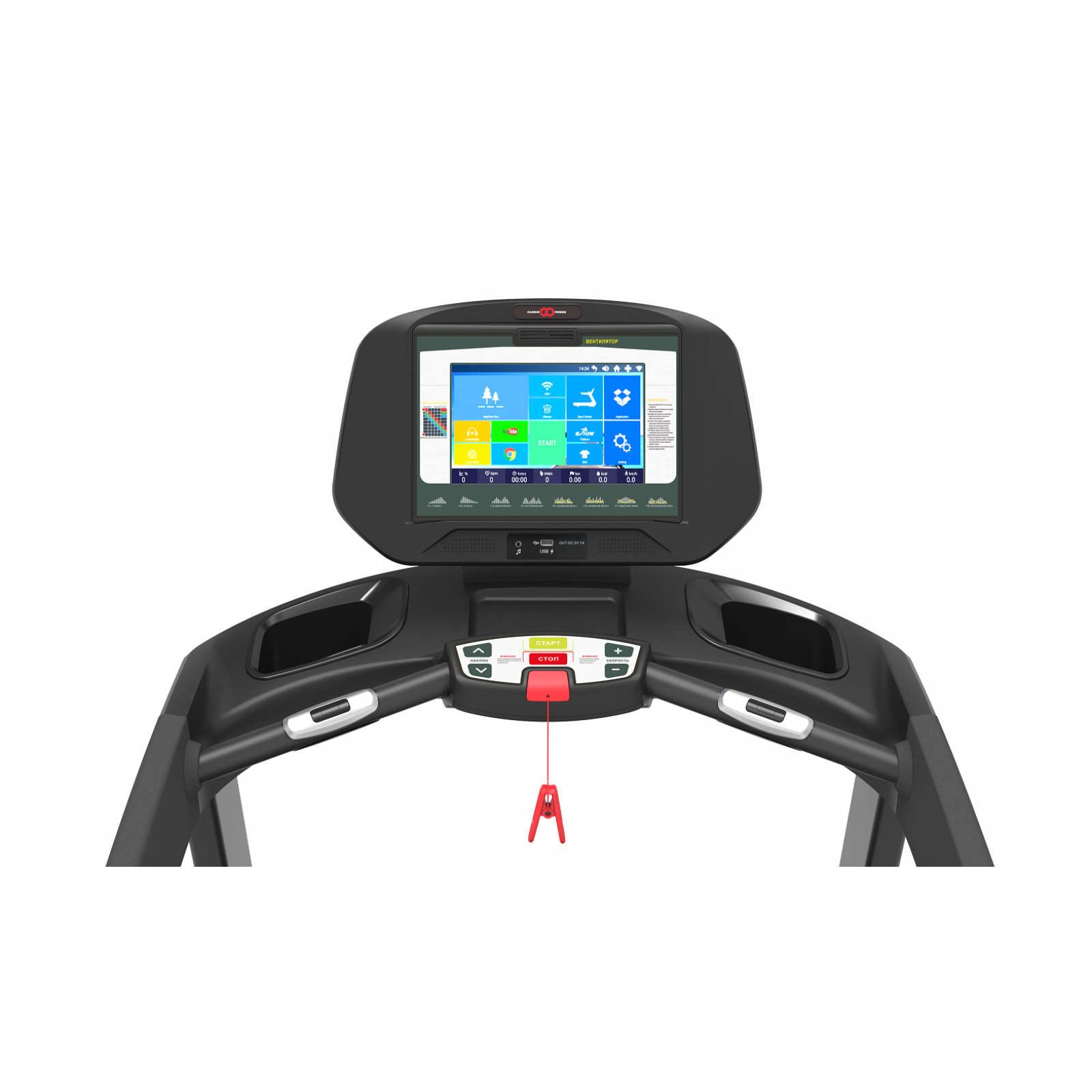 · Держатель для планшета, зарядка USB, держатель для бутылки и вентилятор для создания комфортных условий во время тренировки