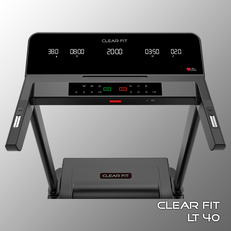 Модель Clear Fit LT 40 серии LifeCardio – максимальная комплектация основополагающих параметров для интенсивных, длительных или терапевтических тренировок. Создана специально для интенсивного домашнего использования, пользователь любого роста и комплекции будет чувствовать себя комфортно, без стеснения движений, без ограничения скорости и выбора тренировок. Мощная конструкция и надежный мотор выдерживают нагрузку до 160 кг., вес тренажера без упаковки 85 кг., это устойчивость, качество и безопасность. Тяжелый лаконичный каркас, комплектующие профессионального уровня, качественная электроника без лишних элементов гарантируют надежность, низкий уровень шума и большой срок эксплуатации.