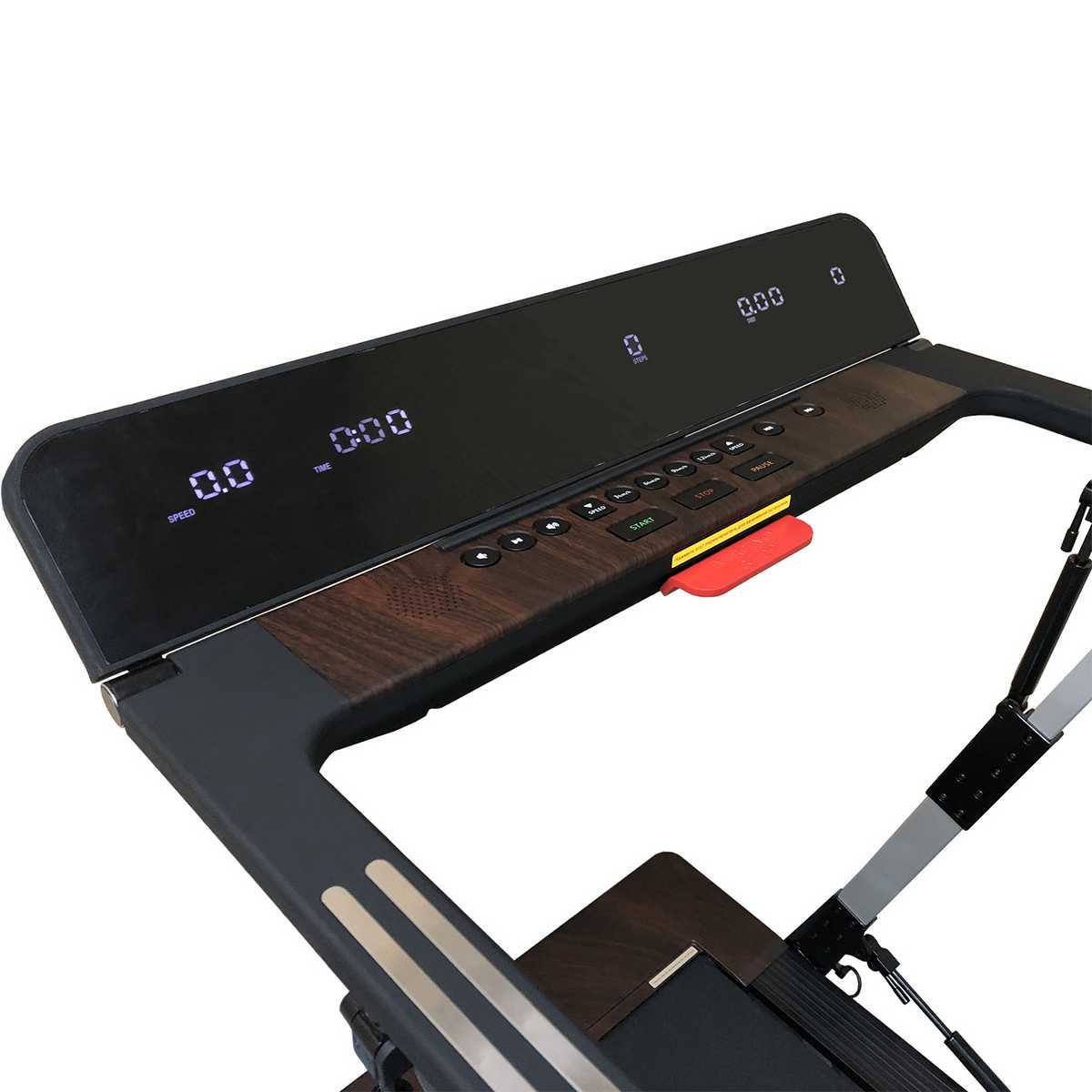 Представляет собой светодиодный дисплей с черной акриловой поверхностью. Пять отдельных экранов выводят всю необходимую во время тренировки информацию: скорость, время тренировки, пройденное расстояние, количество пройденных шагов, пульс, калории. Консоль регулируется по углу наклона в диапазоне от 0 до 90°.
